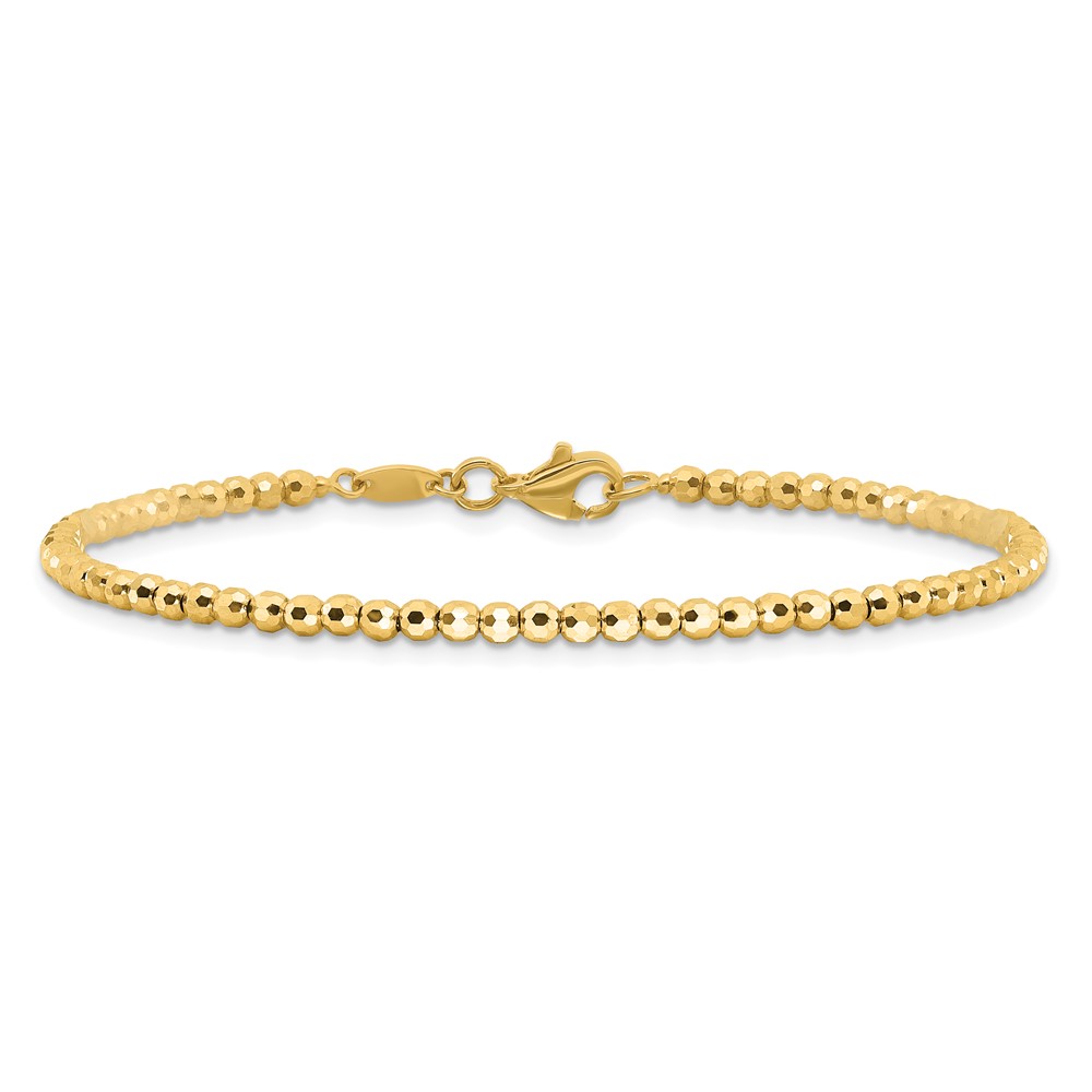 14K Polished and Diamond-cut Beaded 7.25 inch Bracelet