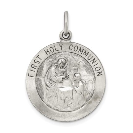 14k Polished and Satin Hollow HOLY COMMUNION Medal Round Pendant
