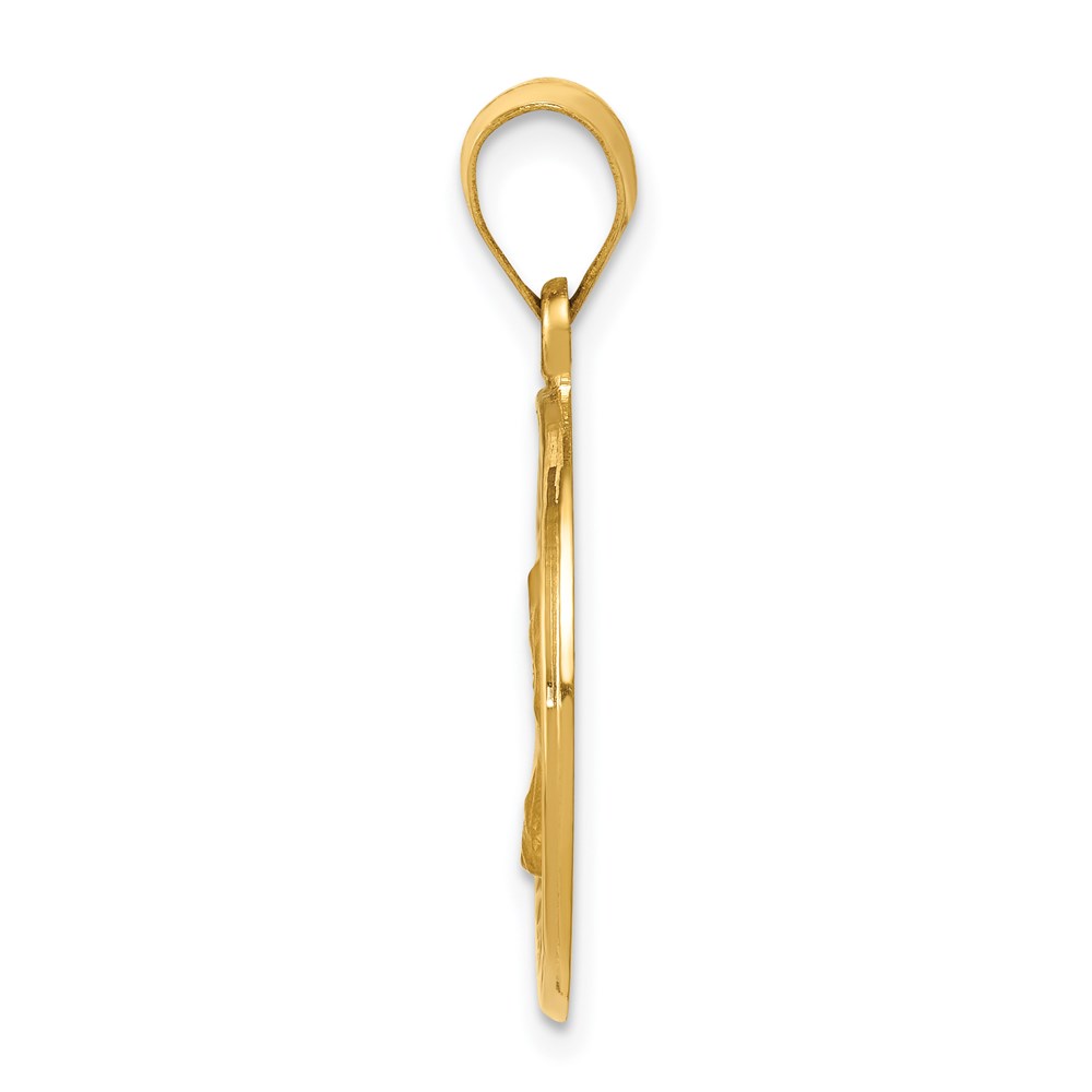 14k Polished and Satin Hollow St. Charles Medal Pendant