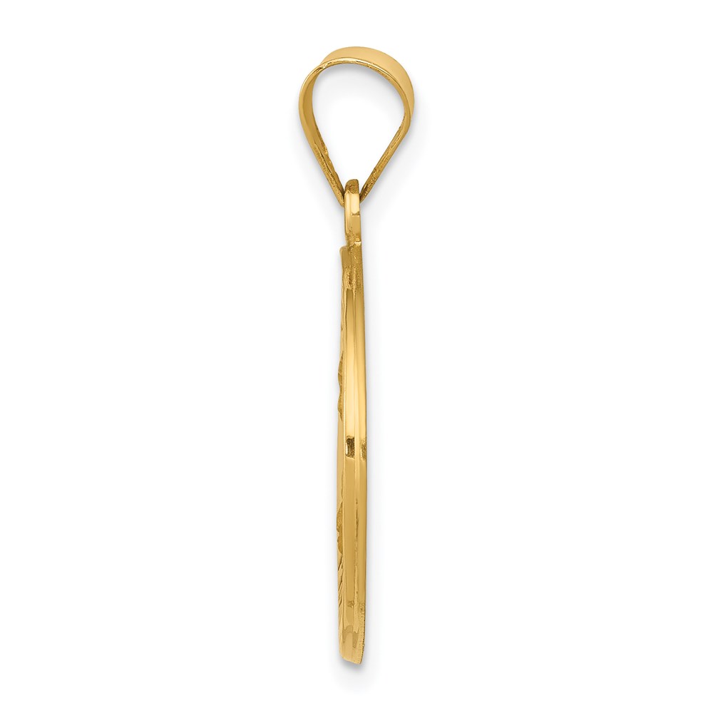 14k Polished and Satin Hollow St Theresa Medal Round Pendant