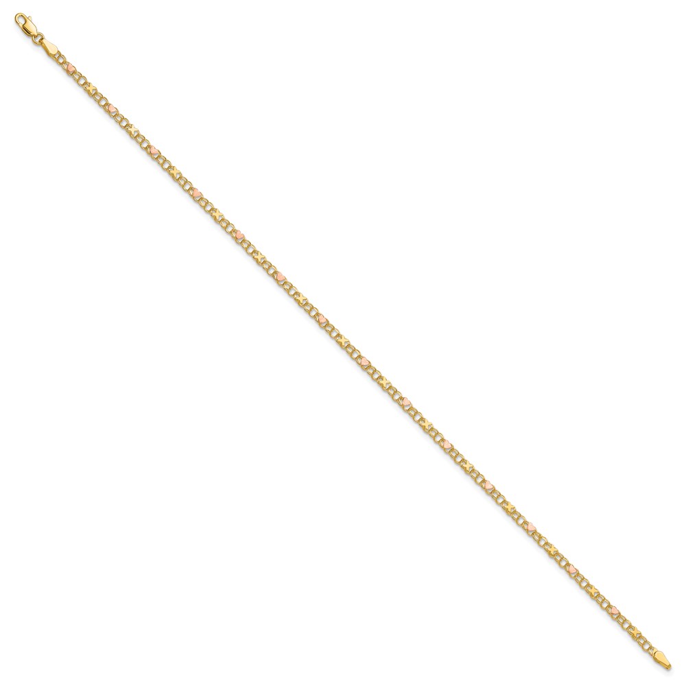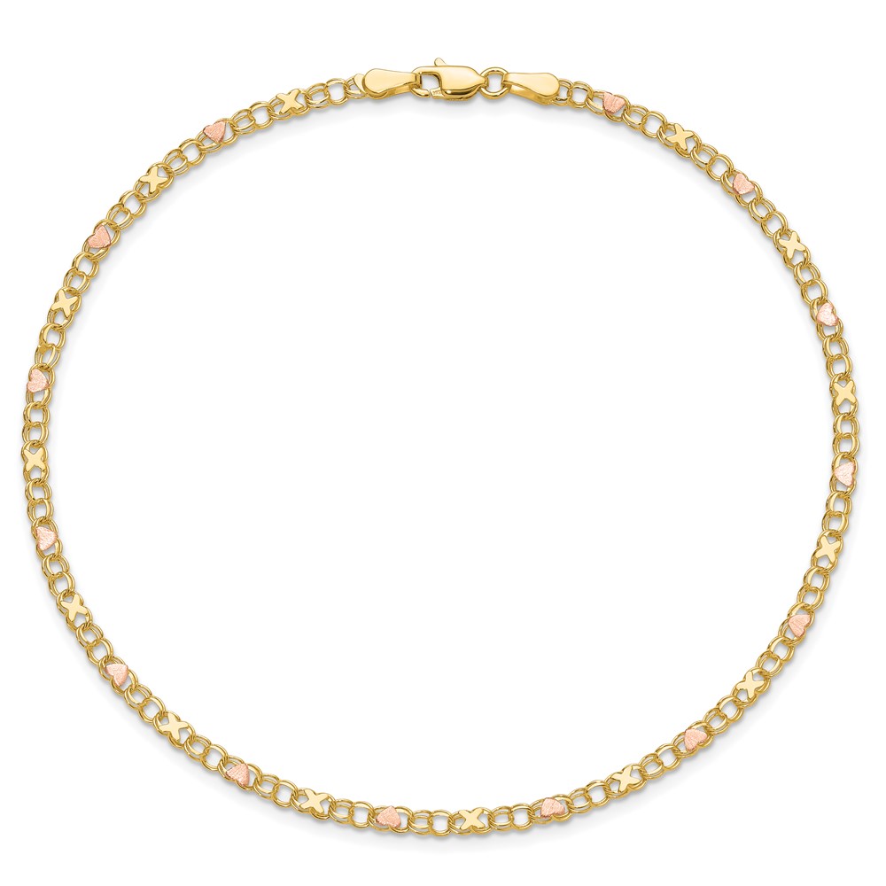 14k Polished and Satin Rose-plated X-and-Heart Anklet