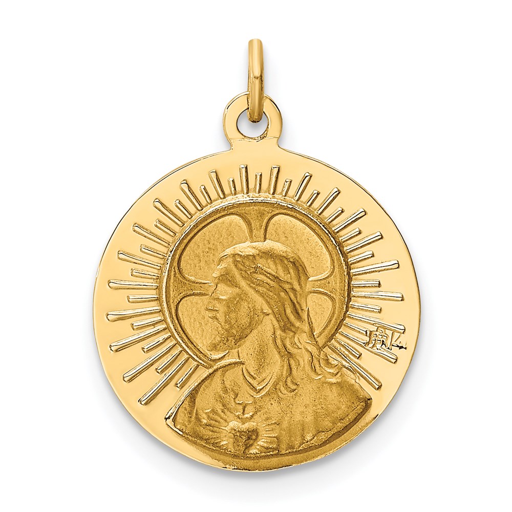 14k Polished and Satin Solid Matka Boska Czestochowska Medal Reversible Round Pendant