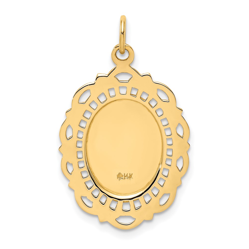 14k Polished and Satin Solid Medium Fancy Pierced Oval St. Christopher Medal Pendant