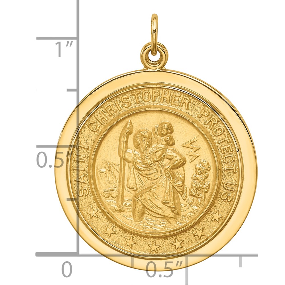 14k Polished and Satin Solid Medium Round Disc St. Christopher Medal Pendant