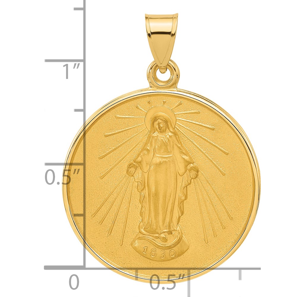 14k Polished and Satin Solid Miraculous Medal Plain Back Round Pendant