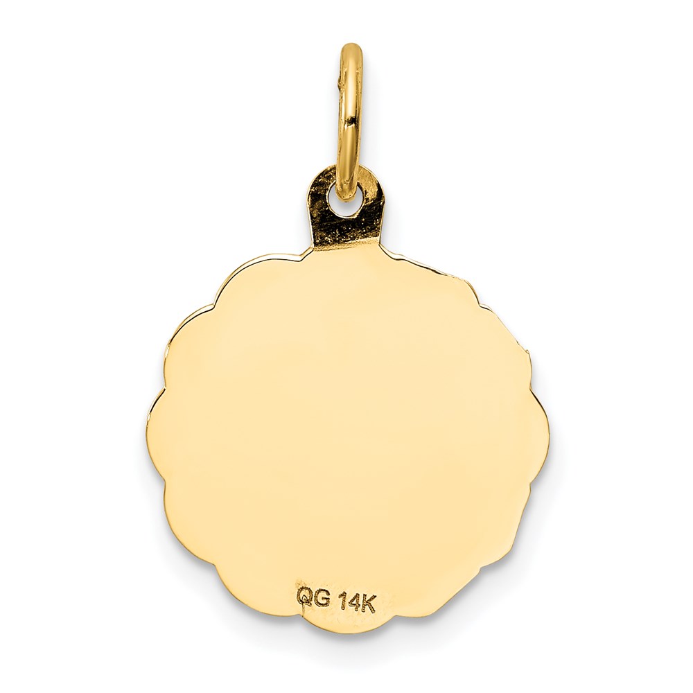 14k Polished and Satin Solid MY CONFIRMATION with Dove Scalloped Edge Round Disc Pendant