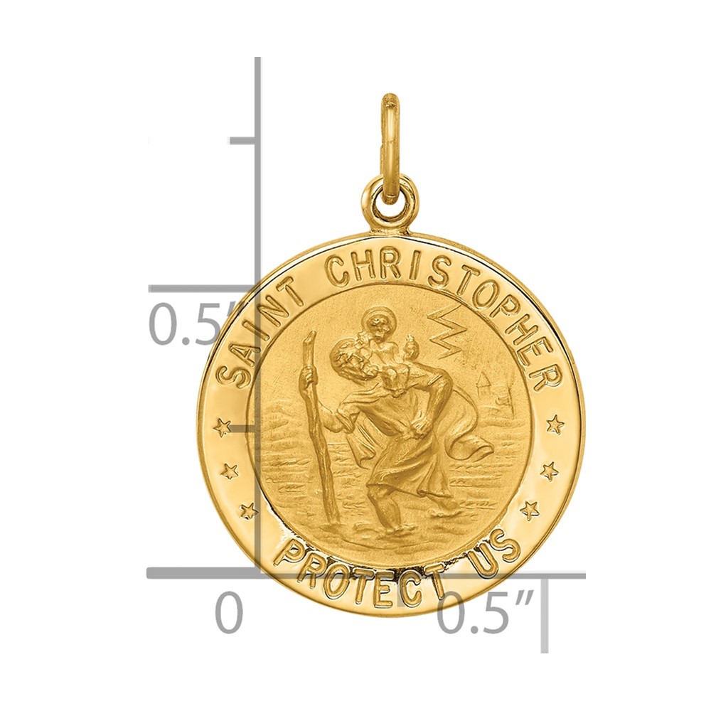 14k Polished and Satin Solid Small Round St. Christopher Medal Pendant