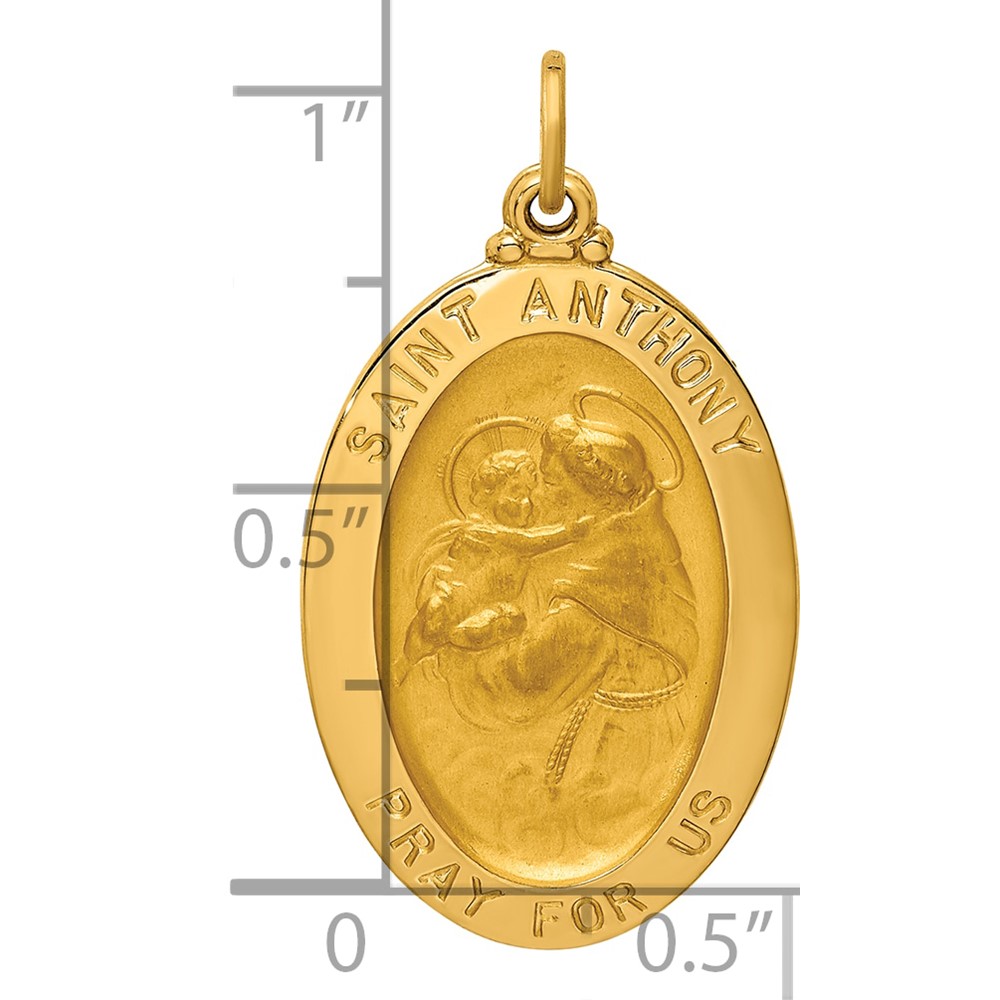 14k Polished and Satin Solid St. Anthony Medal Oval Pendant