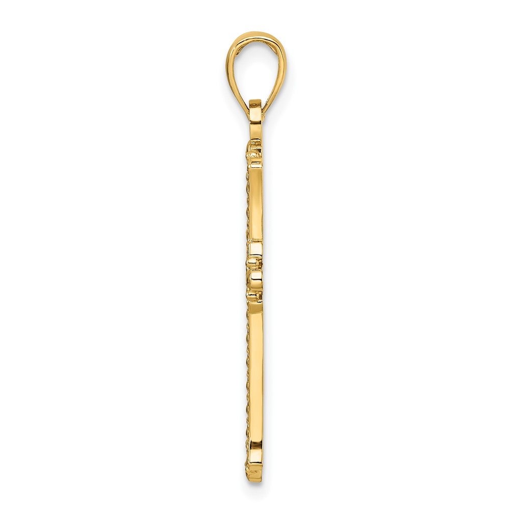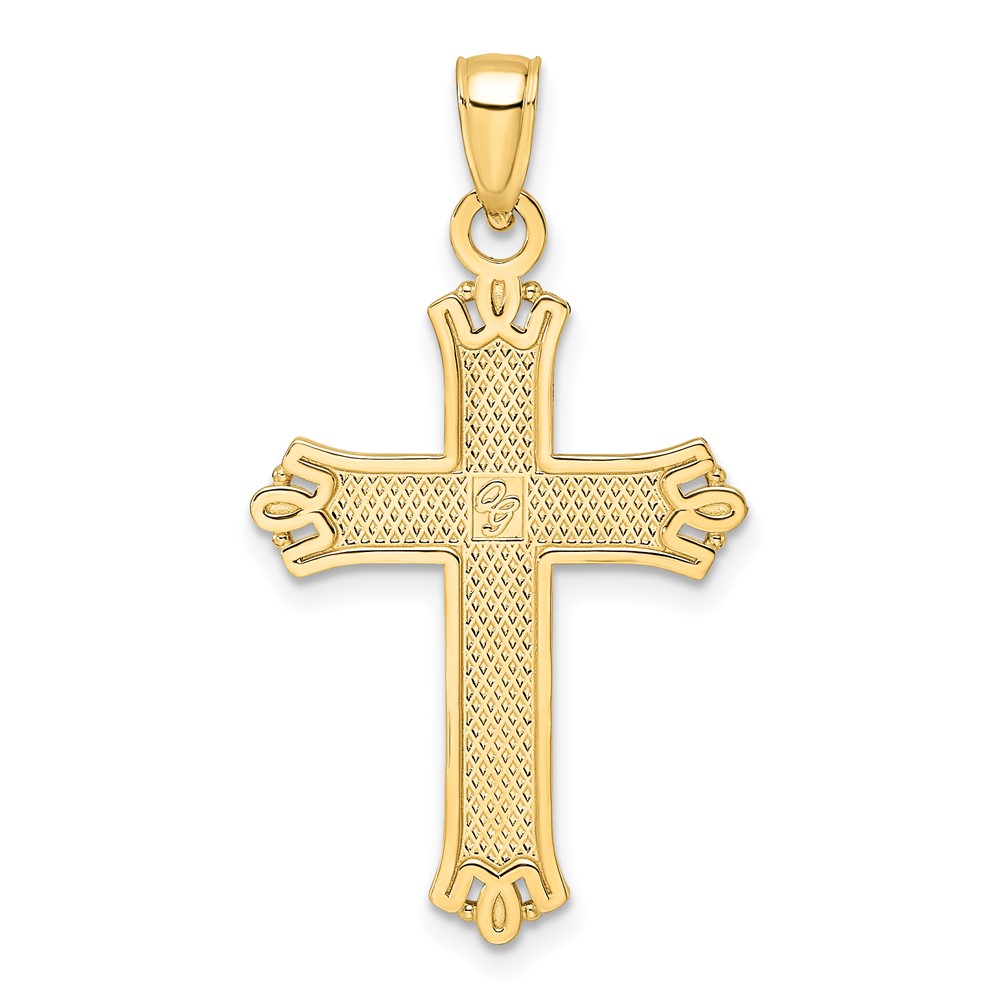 14K Polished and Textured Pointed Ends Fancy Cross Pendant