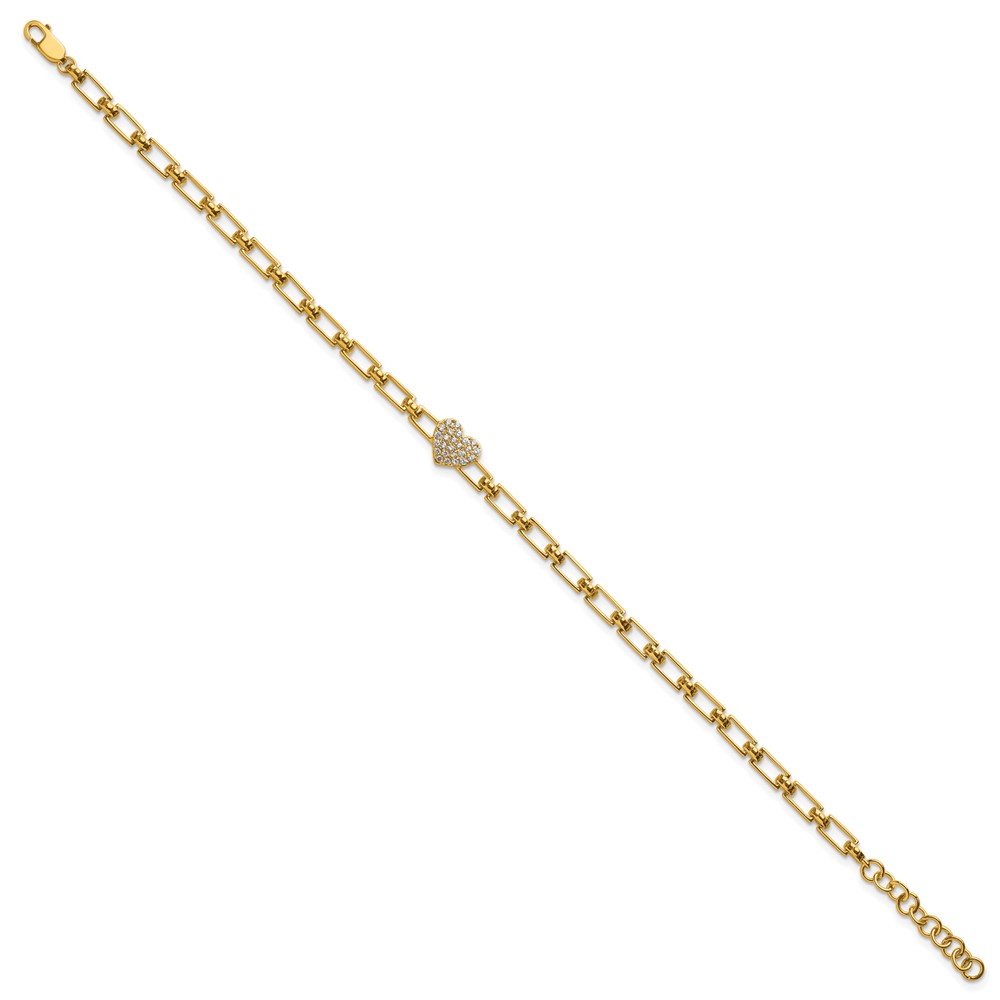 14K Polished Complete 1/6 carat Diamond Heart Cluster Fancy Link 7 inch Bracelet with 1 inch Extender