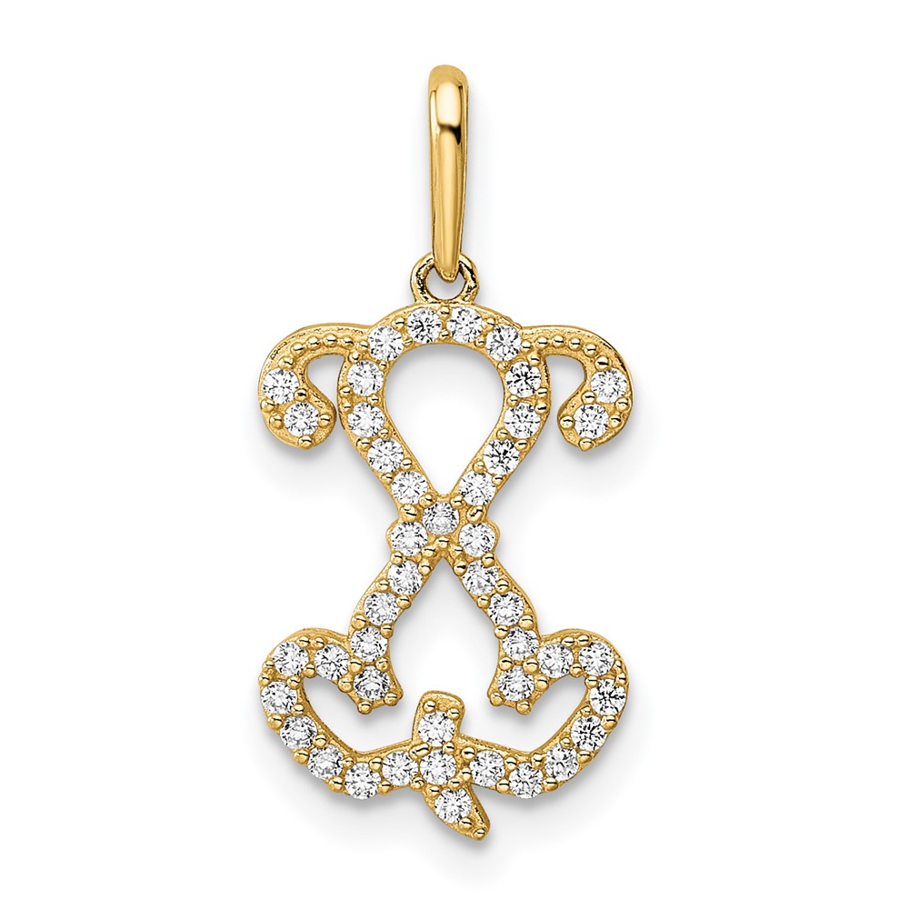 14K Polished CZ Puppy Sitting Outline Pendant