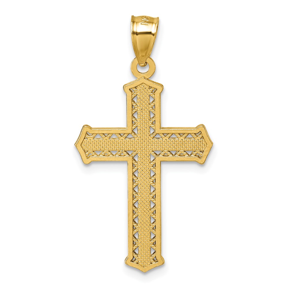 14k Polished Diamond-cut Textured Fancy Pierced Design Cross Pendant