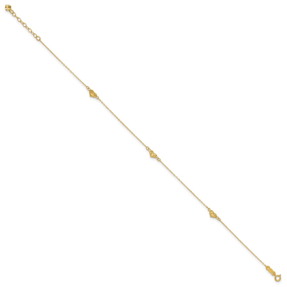 14k Polished Diamond-cut Triple Puffed Hearts Plus Extender – Total Anklet