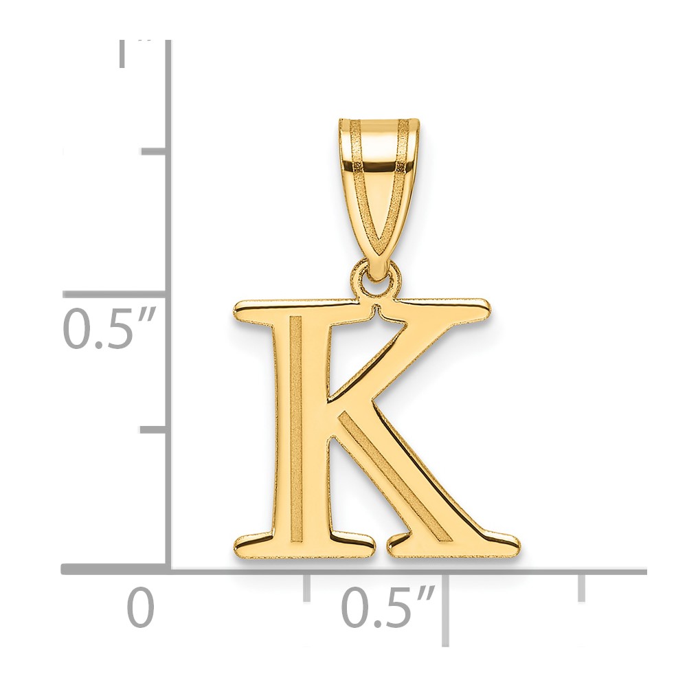14k Polished Etched Letter K Initial Pendant