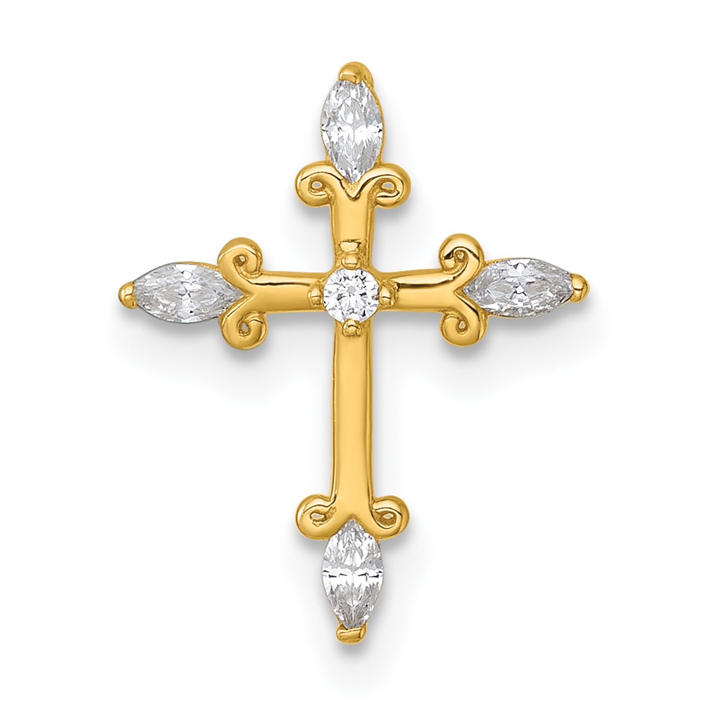 14k Polished Fancy CZ Cross Chain Slide Pendant
