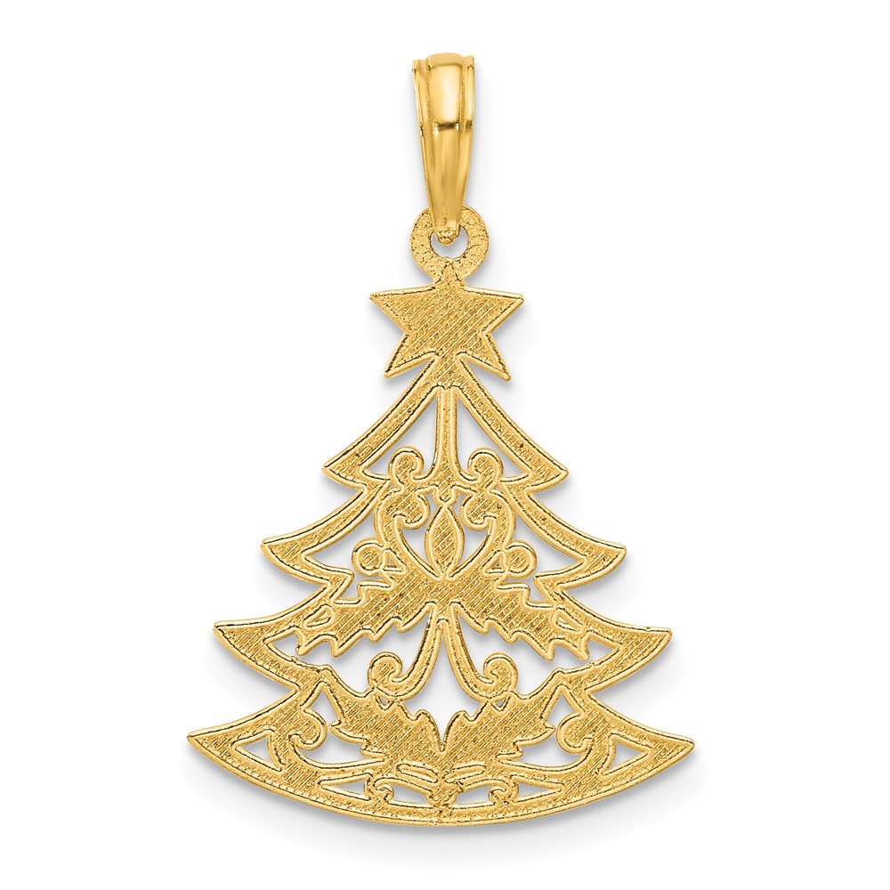 14k Polished Fancy Scrolled Christmas Tree Pendant