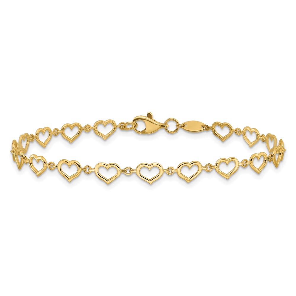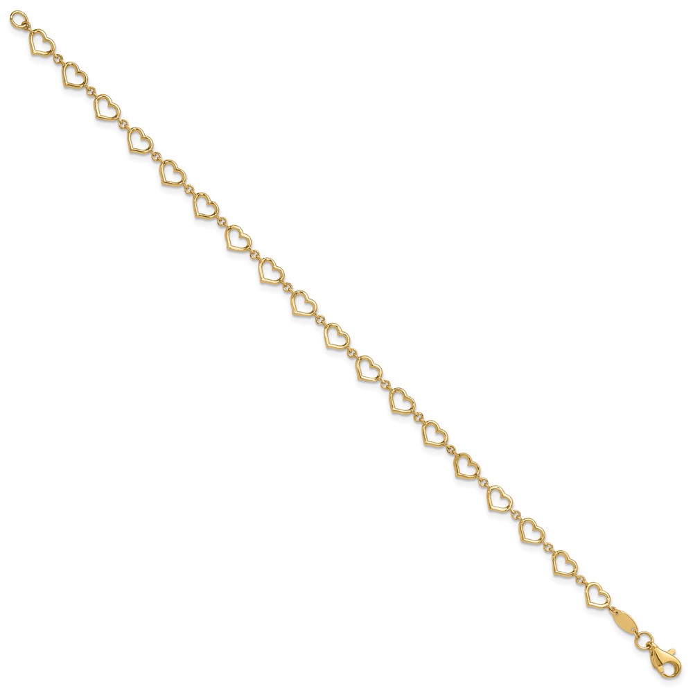 14K Polished Open Heart Link 7.5 inch Bracelet