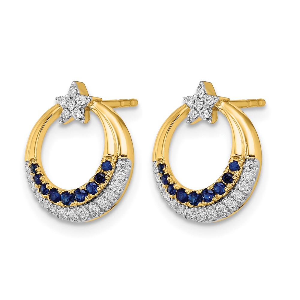 14k Polished Sapphire and Diamond Star and Circle Post Earrings