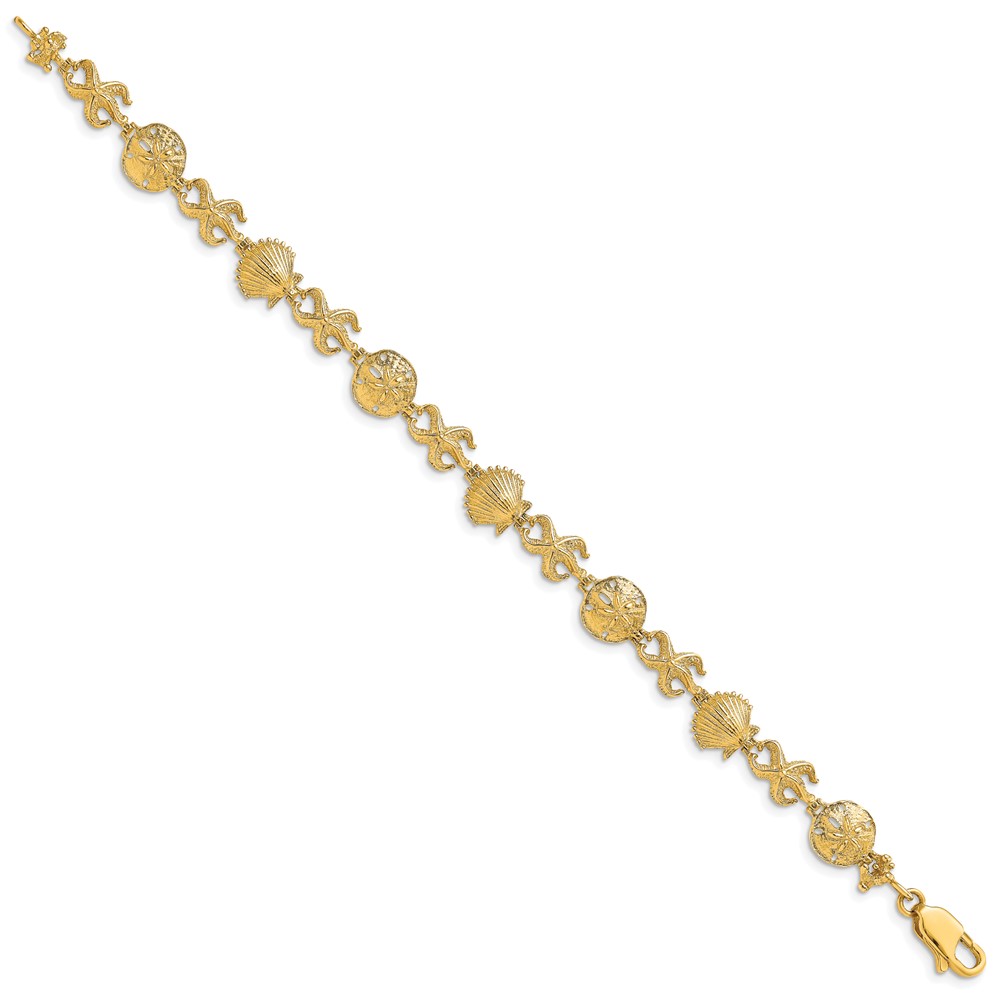 14K Polished Shell/Sand Dollar/Starfish 7 inch Bracelet