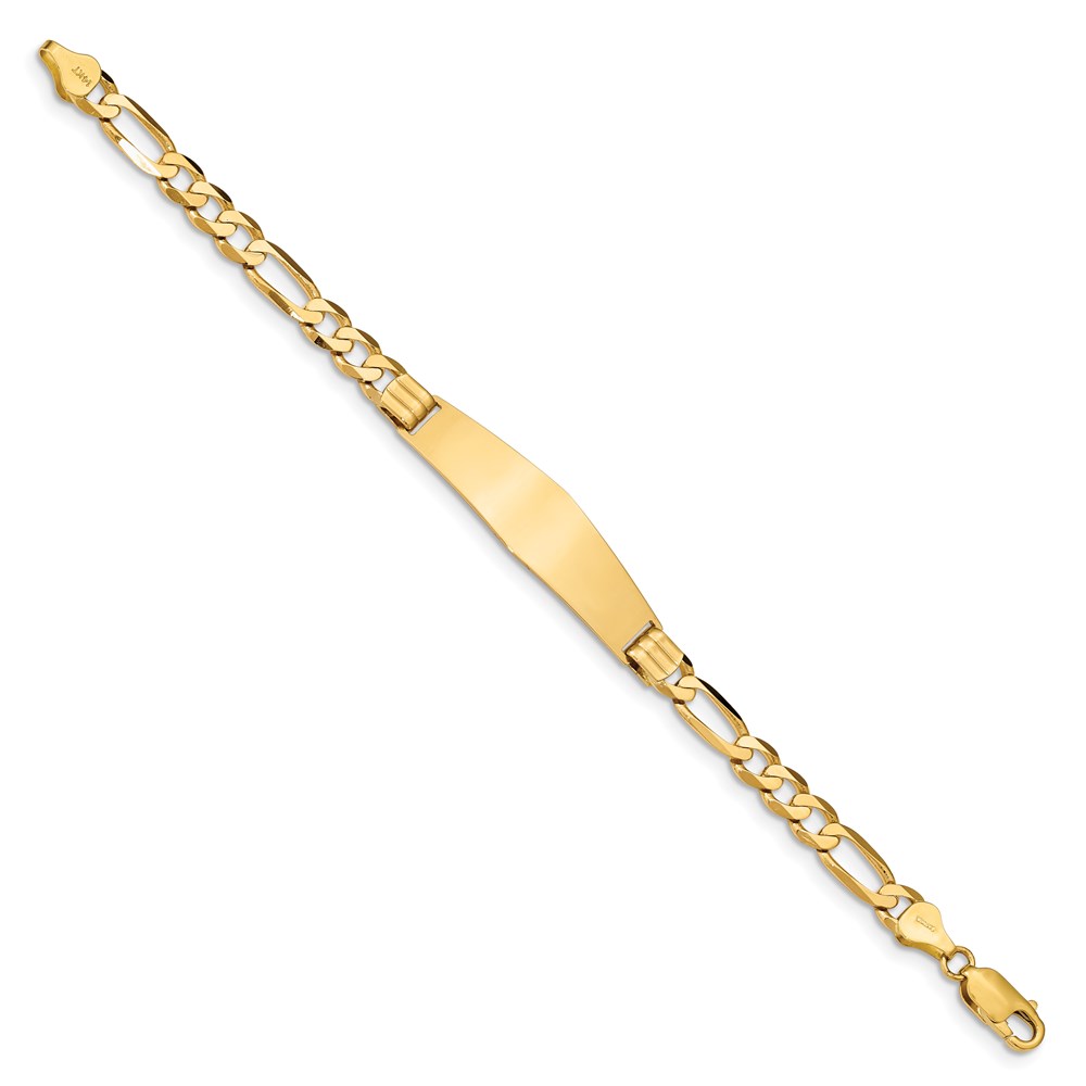 14k Polished Solid Chain/Solid Plate Figaro Link Soft Diamond Shape 37x10mm Plate 7 inch ID Bracelet