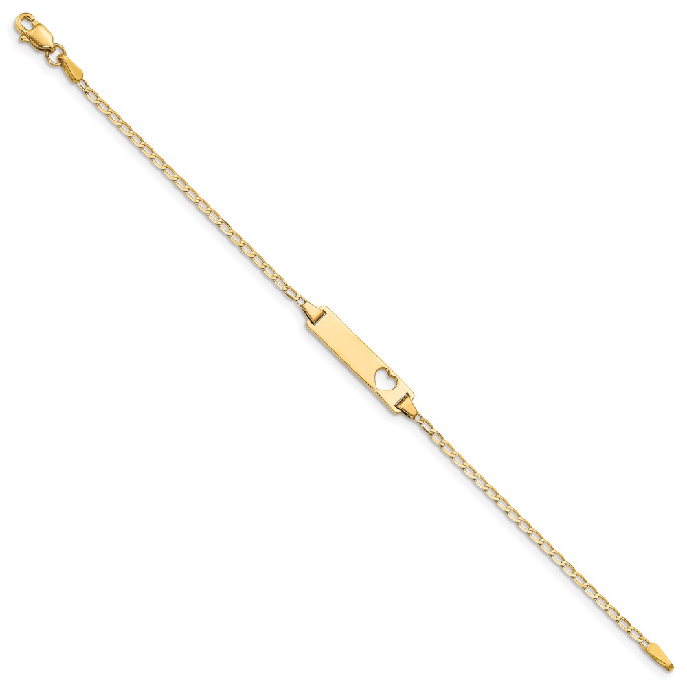 14k Polished Solid Chain/Solid Plate Flat Curb Link Cut-out Heart 20x5mm Plate 6 inch Baby/Child ID Bracelet