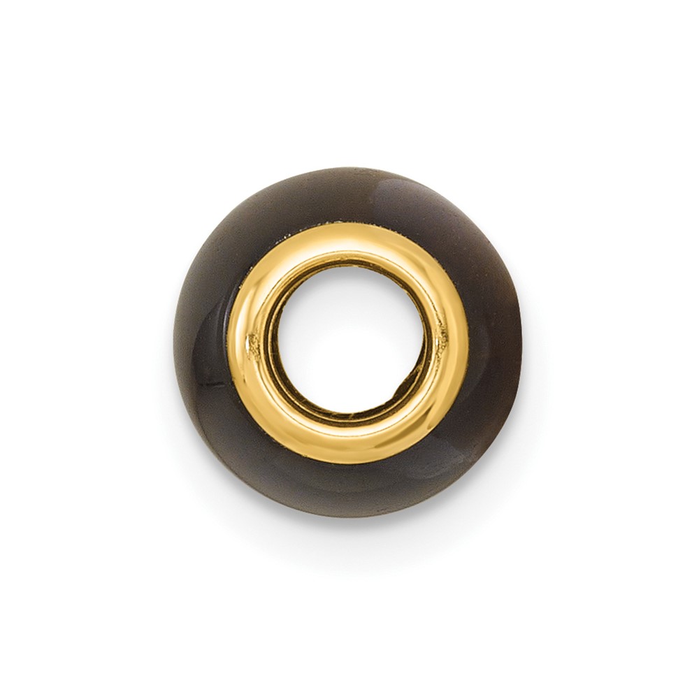 14K Polished Tiger’s Eye Oval Barrel Bead Chain Slide Pendant