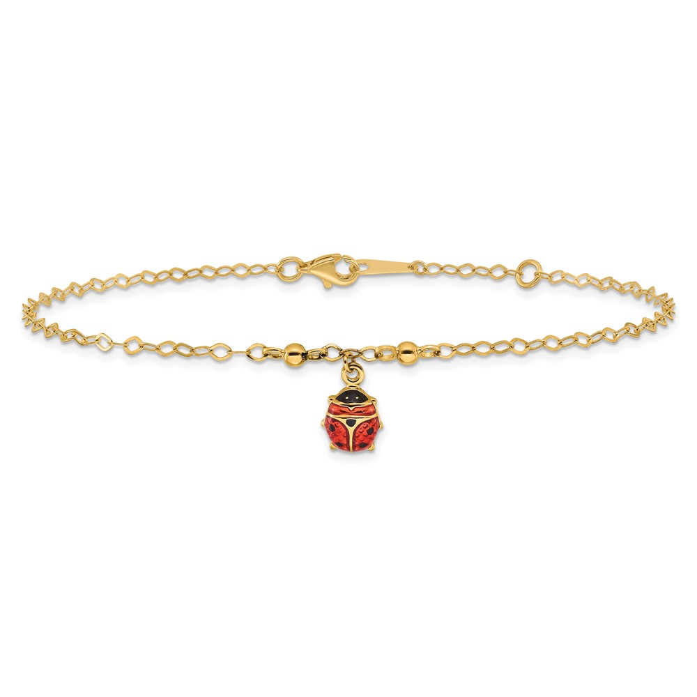 14K Red and Black Enameled Ladybug Plus Extender – Total Anklet