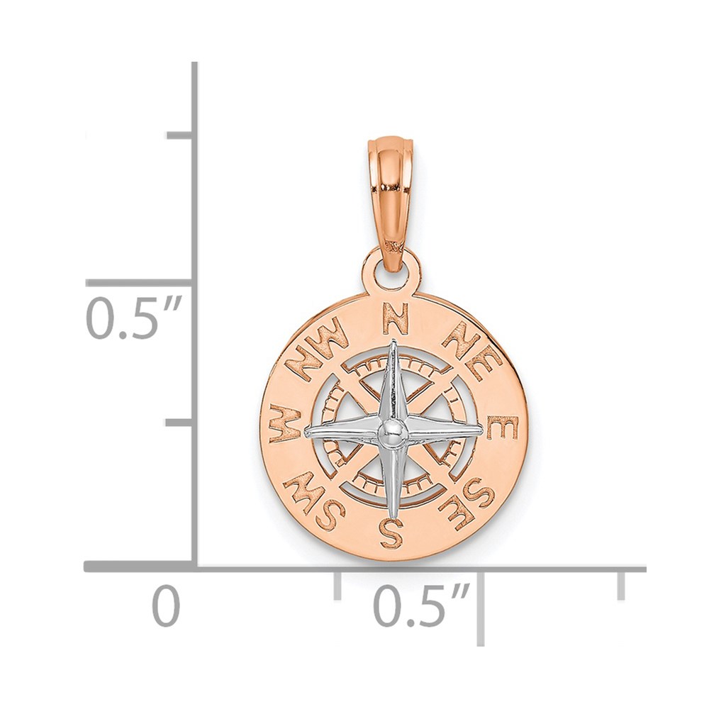 14K Rose and White Gold Mini Nautical Compass Pendant