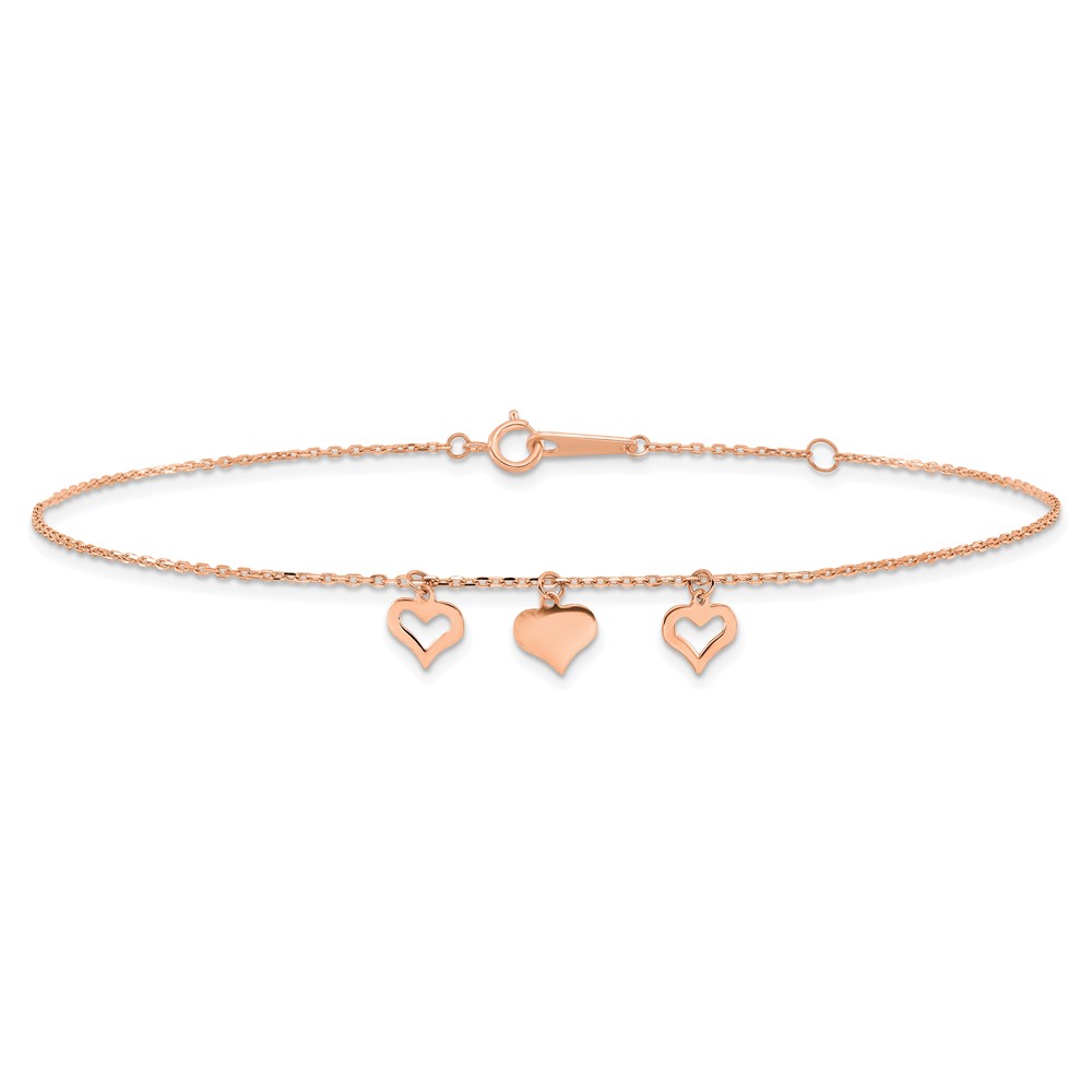 14k Rose Gold 3 Heart Dangles Plus Extender – Total Anklet