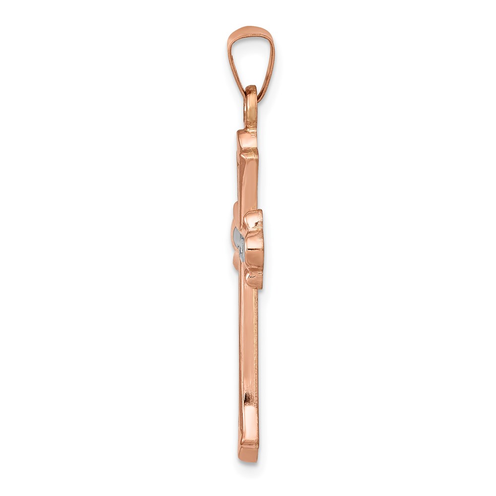 14K Rose Gold and White Rhodium Fleur de Lis Cross Pendant