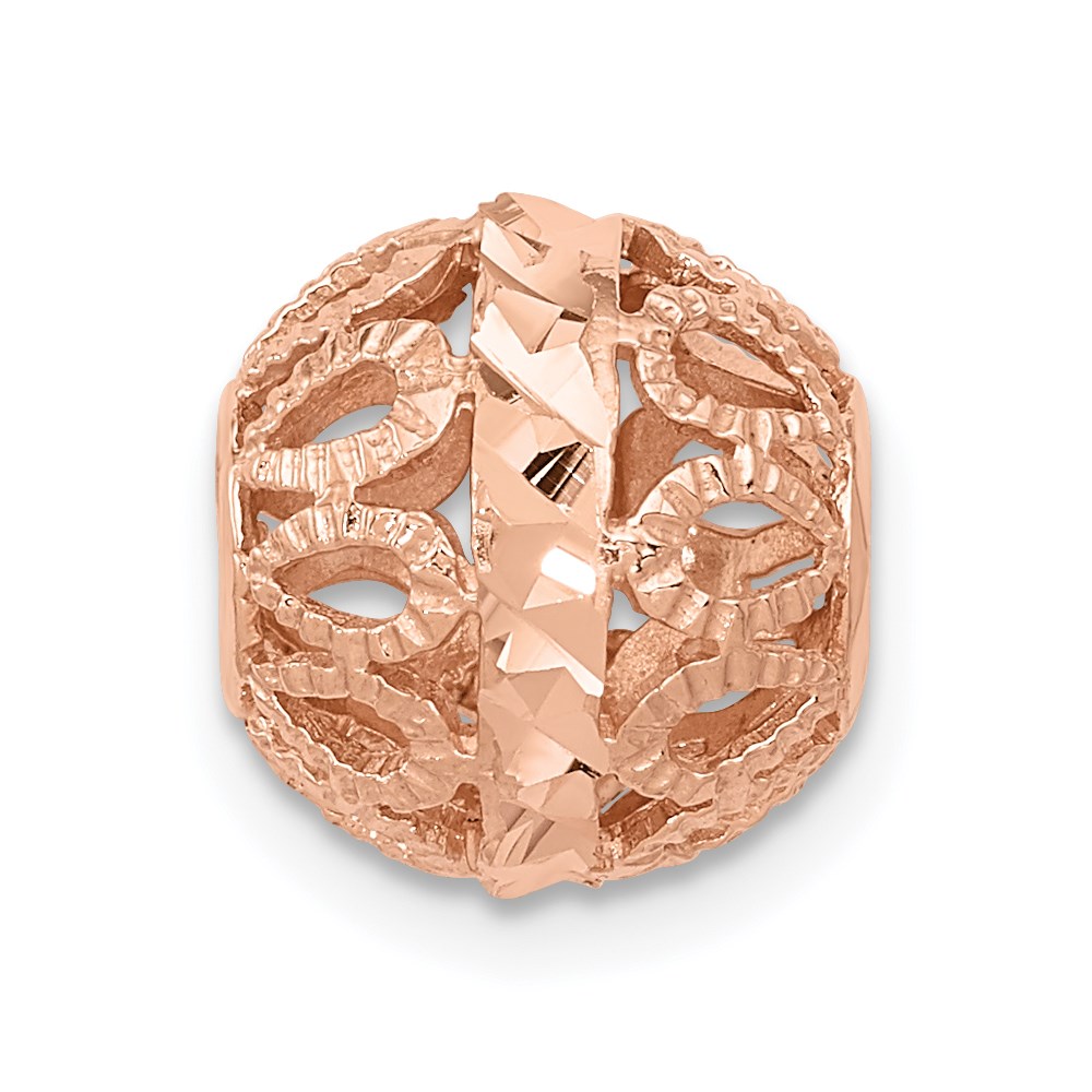 14k Rose Gold Diamond-cut Filigree Ball Chain Slide