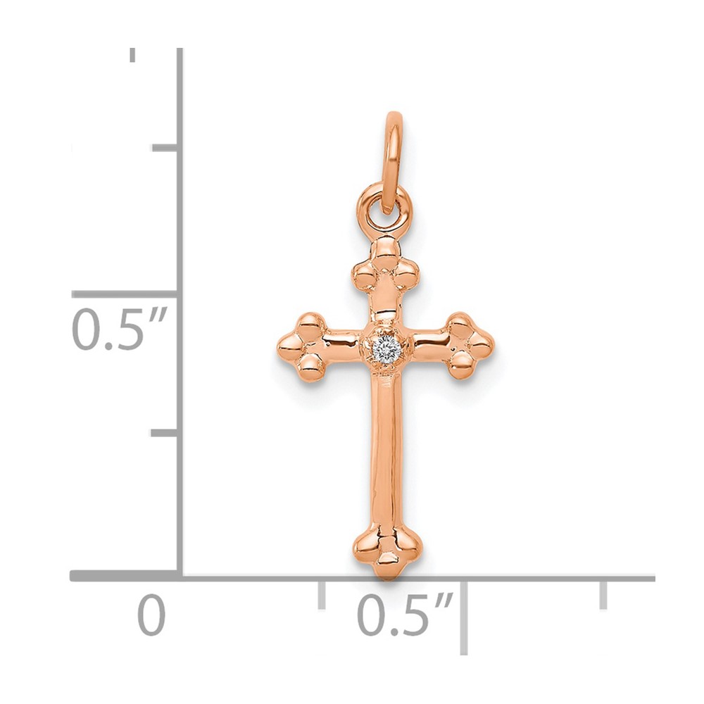 14k Rose Gold Small Diamond Budded Cross Pendant