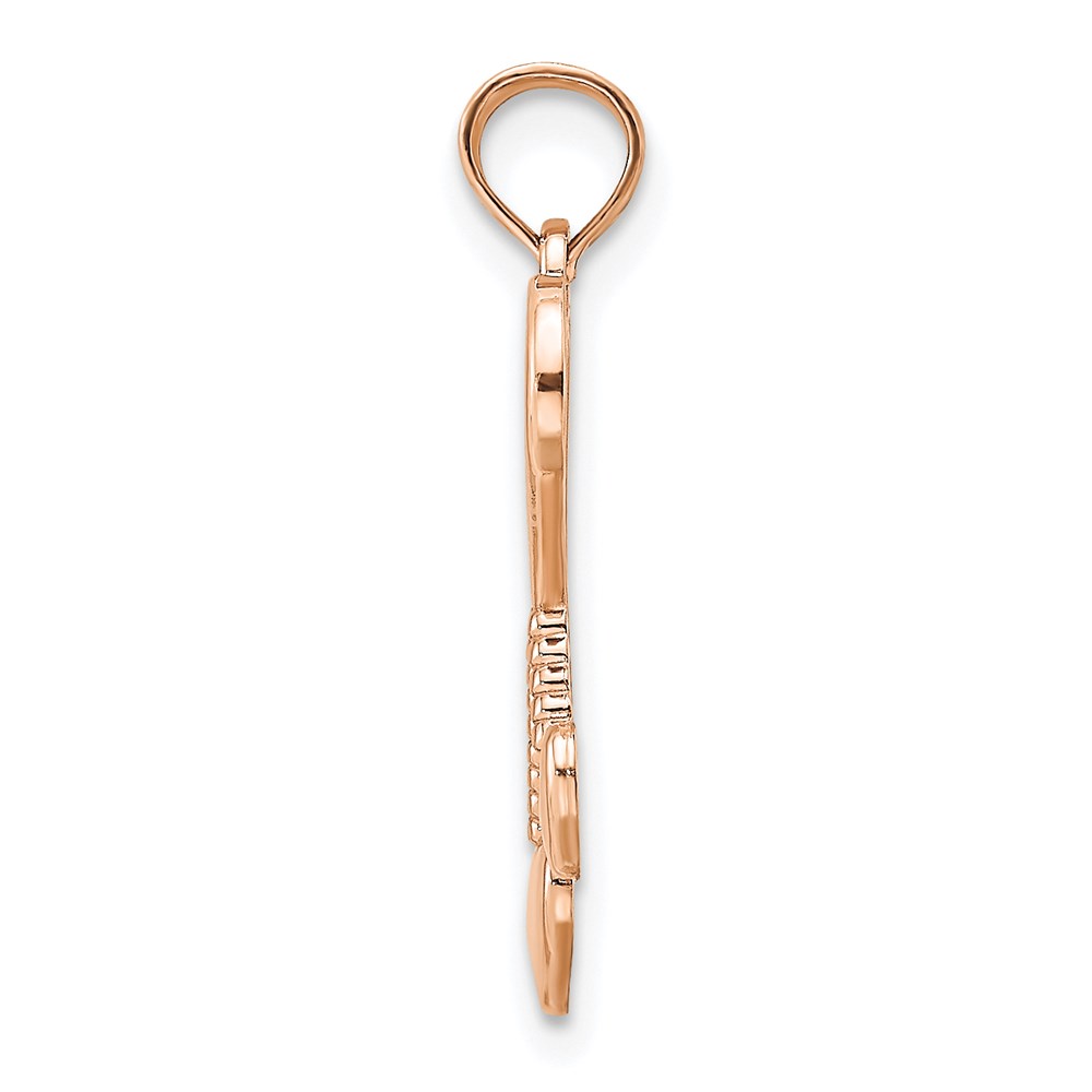 14K Rose Polished Heart with Double Heart Tassel Pendant