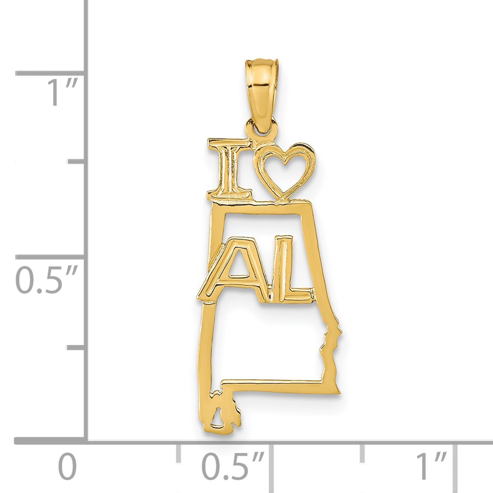 14k Solid I HEART AL Alabama State Pendant