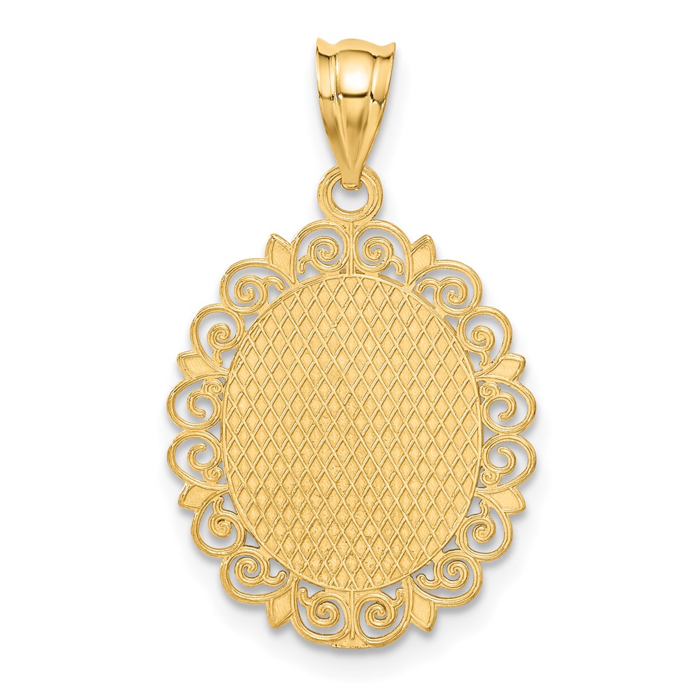 14k Solid Satin Polished Aquarius Zodiac Oval Pendant