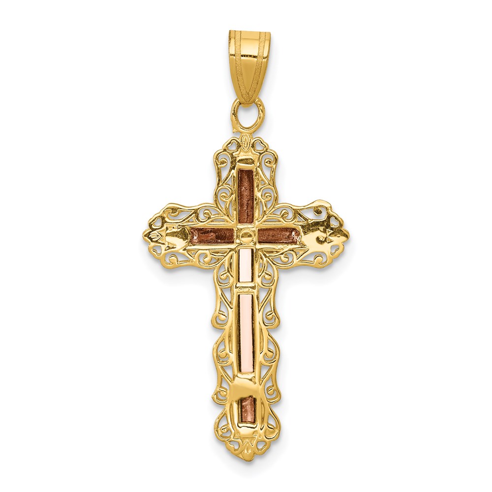14K Tri-color Diamond-cut Filigree Crucifix Pendant