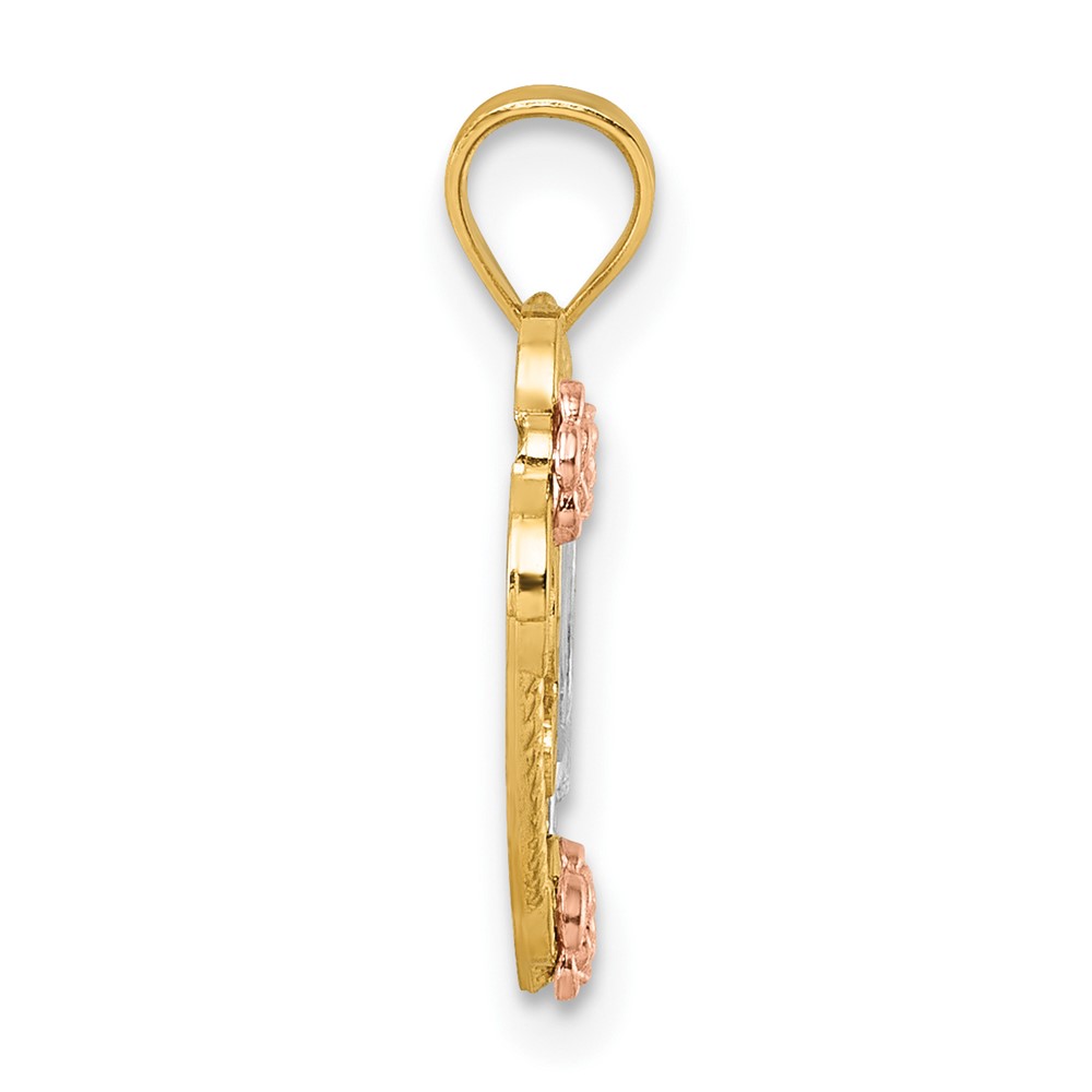 14k Two-tone and White Rhodium Polished LOVE Floral And Bird Heart Pendant