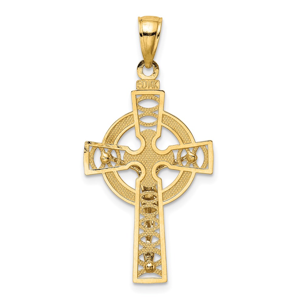 14k Two-tone Celtic Crucifix with Eternity Circle Charm