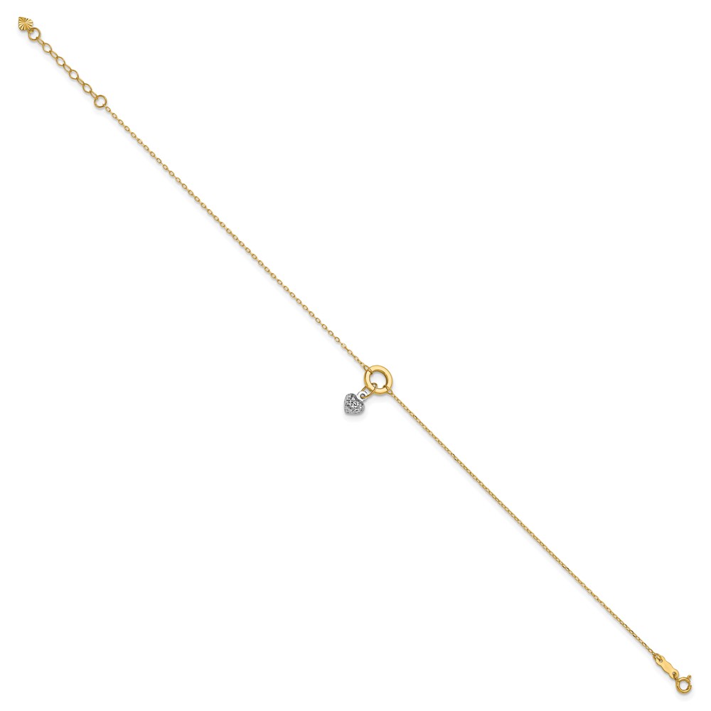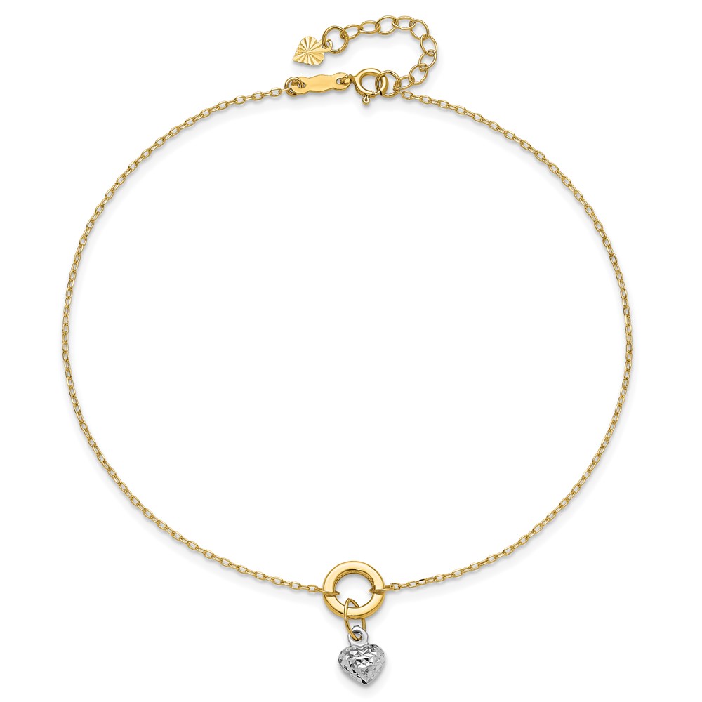 14K Two-tone Circle with Diamond-cut Puffed Heart Dangle Plus Extender – Total Anklet