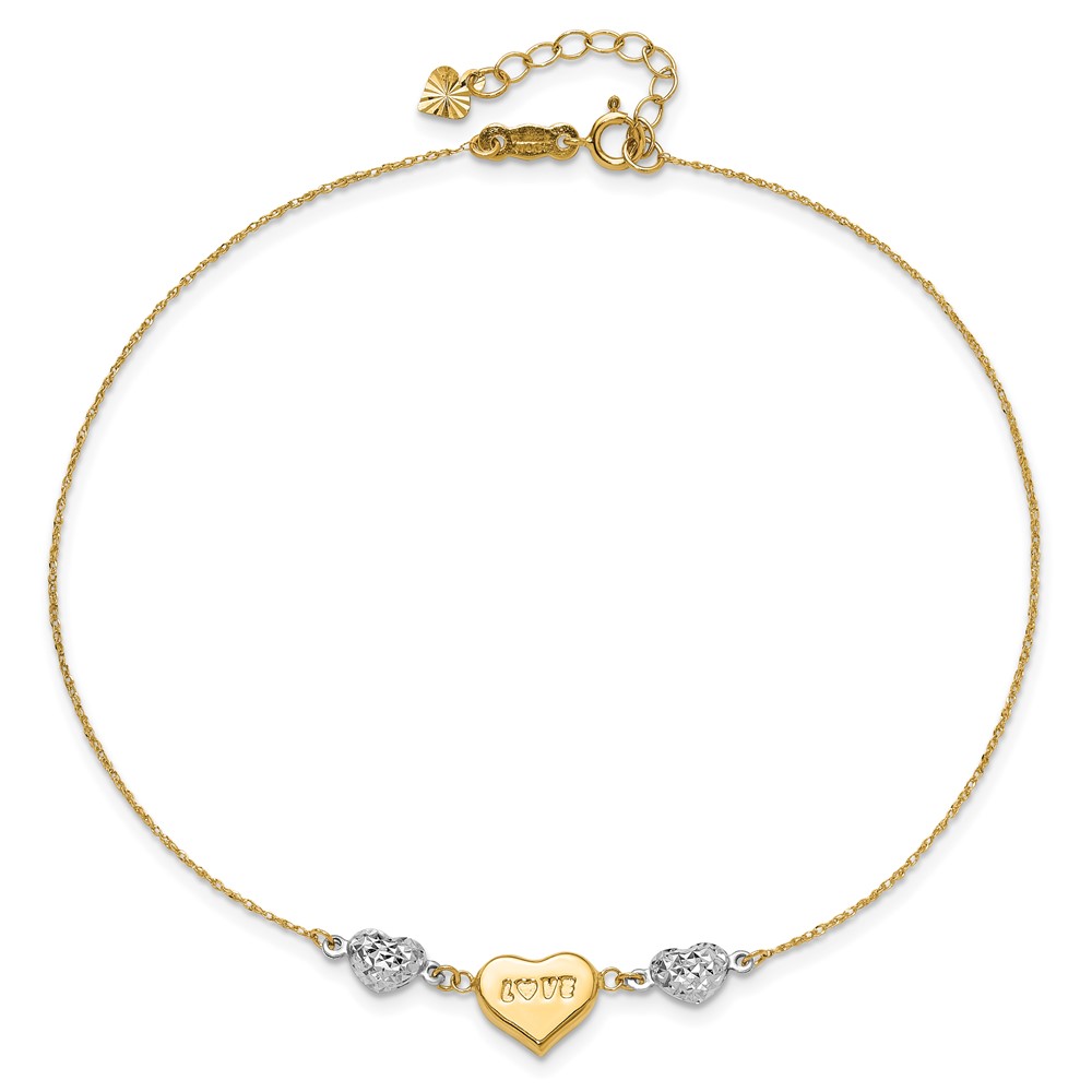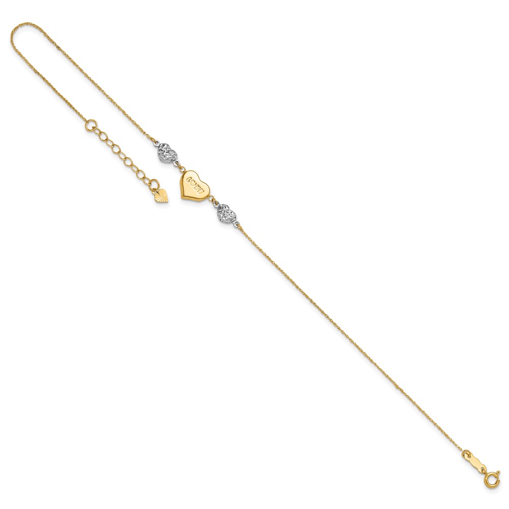 14K Two-tone Diamond-cut and LOVE Puffed Heart Plus Extender – Total Anklet