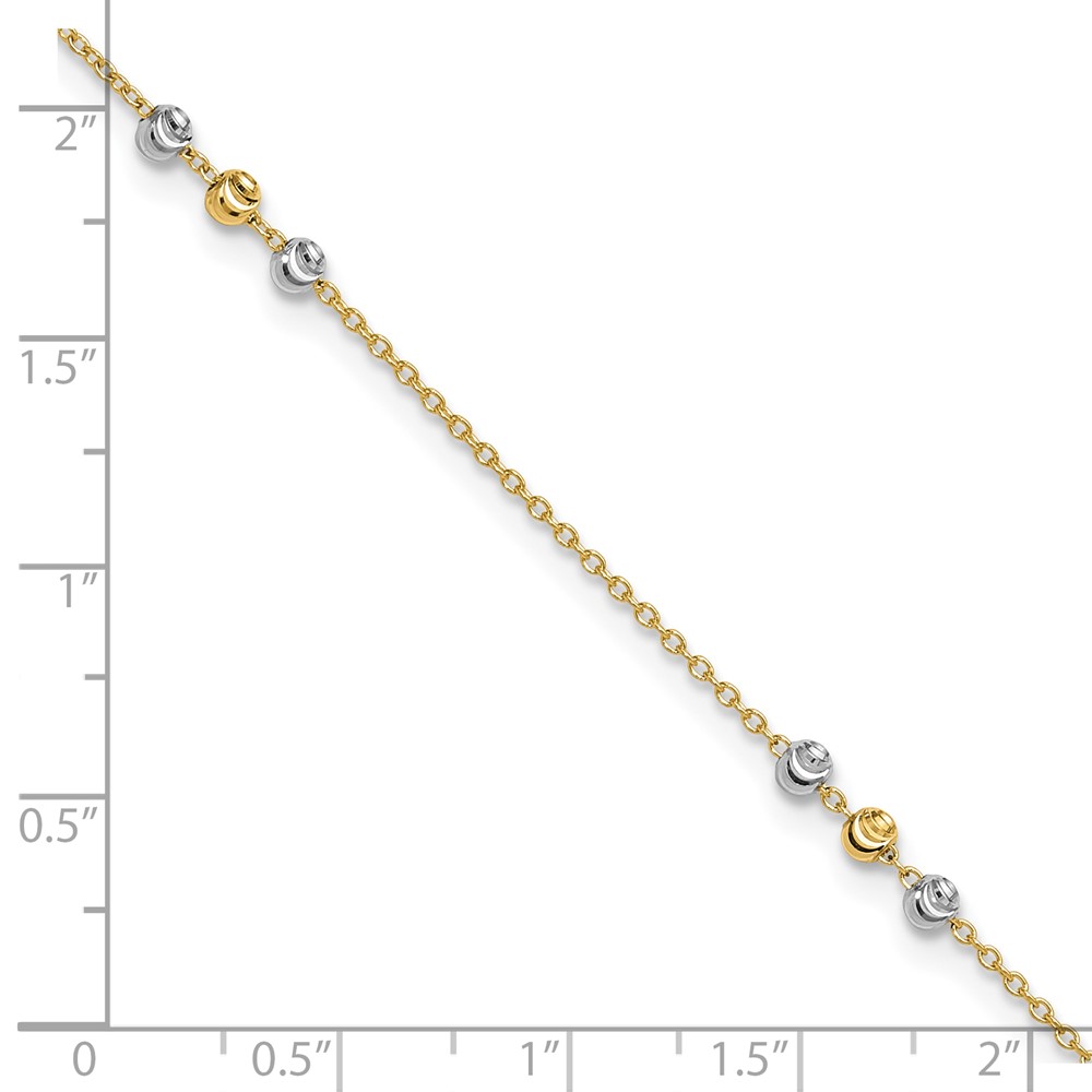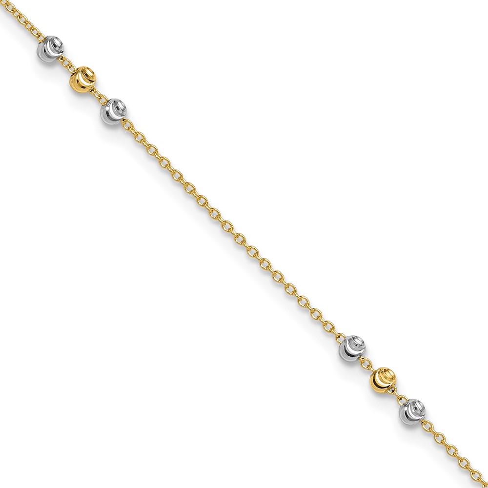 14K Two-tone Diamond-cut Beaded 4-Station Plus Extender – Total Anklet
