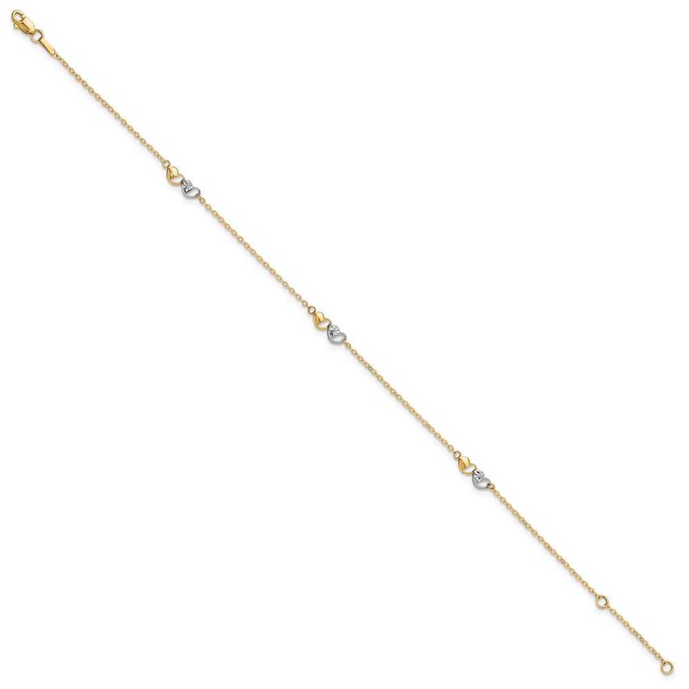 14k Two-tone Diamond-cut Double Hearts 3-Station Plus Extender – Total Anklet