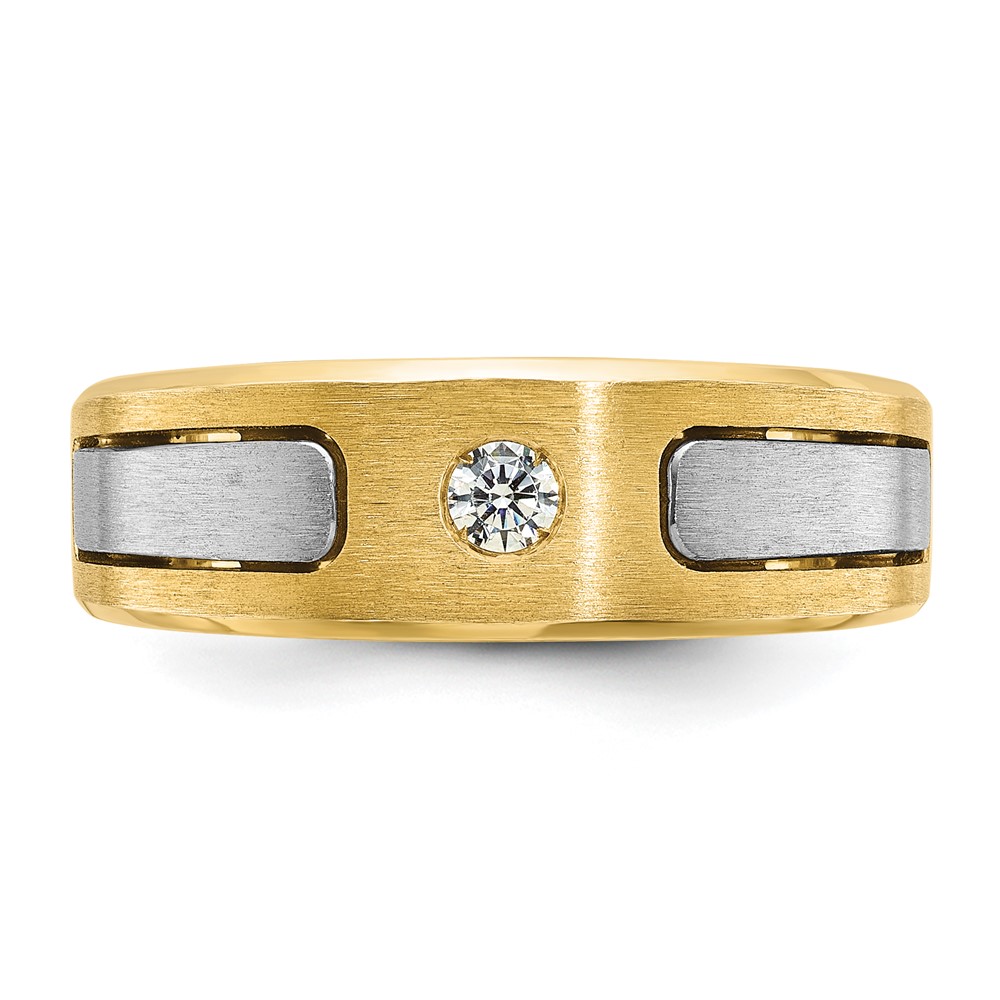 14k Two-tone IBGoodman Men’s Polished and Satin 1/10 carat Diamond Complete Ring