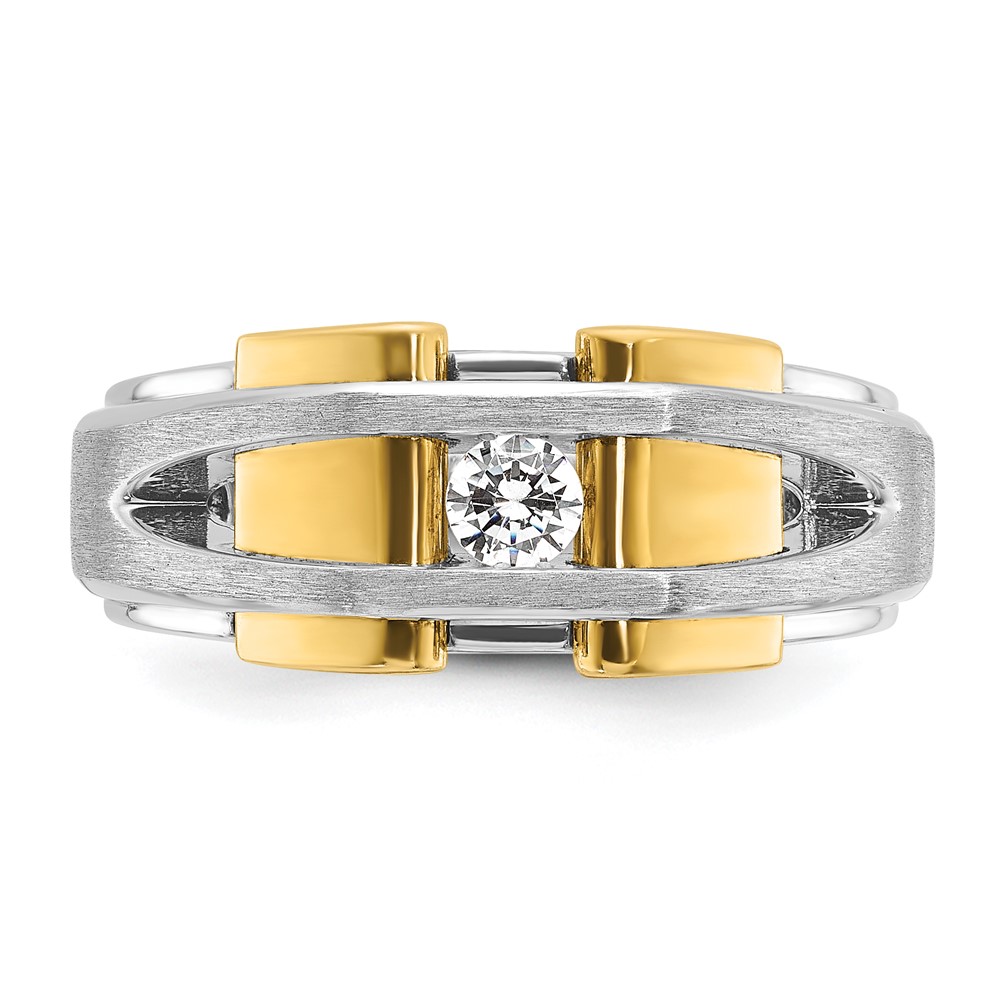 14k Two-tone IBGoodman Men’s Polished and Satin 1/5 carat Diamond Complete Ring