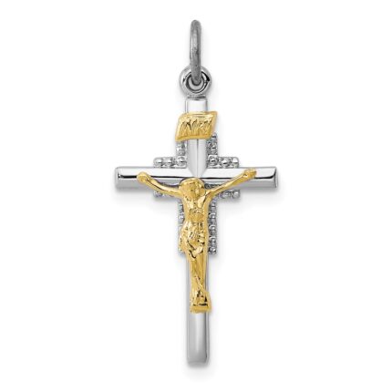 14K Two-tone INRI Crucifix Pendant