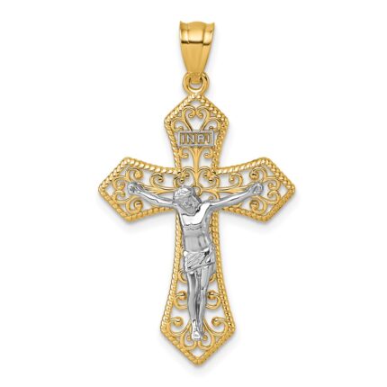 14k Two-tone Large Diamond-cut Crucifix Pendant