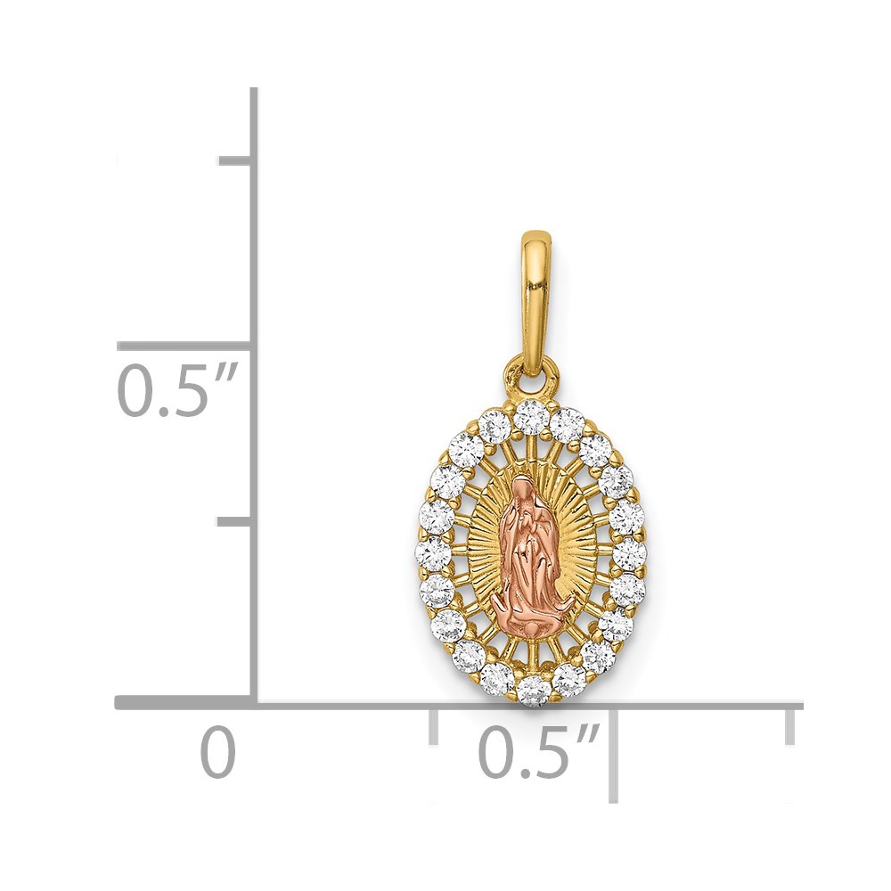 14K Two-tone Our Lady of Guadalupe CZ Oval Pendant