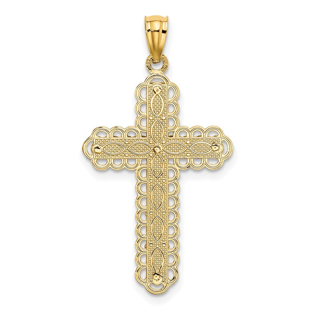 14K Two-tone Polished 2-Level Filigree Cross Pendant