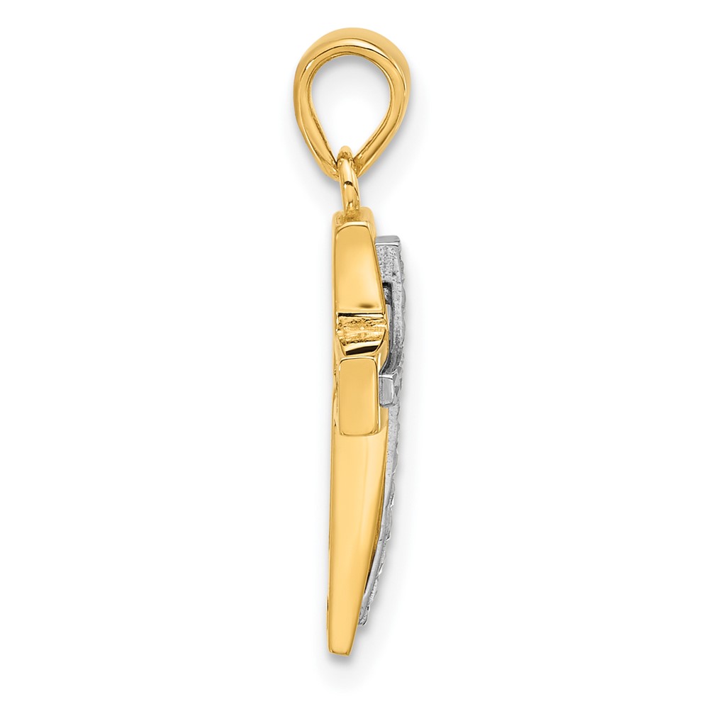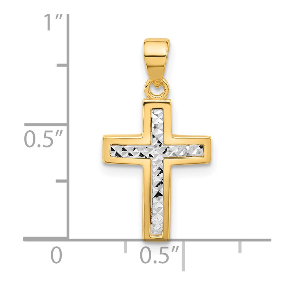 14K Two-tone Polished and Diamond-cut Cross Pendant