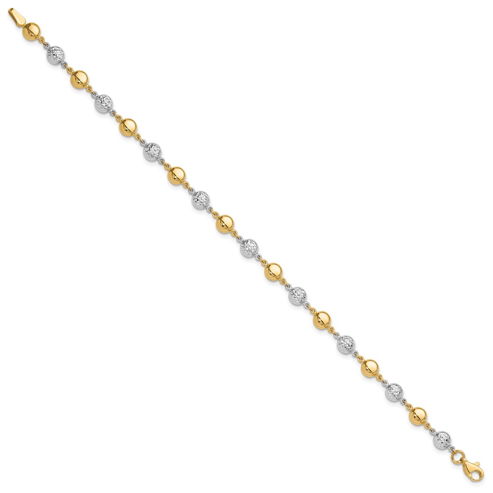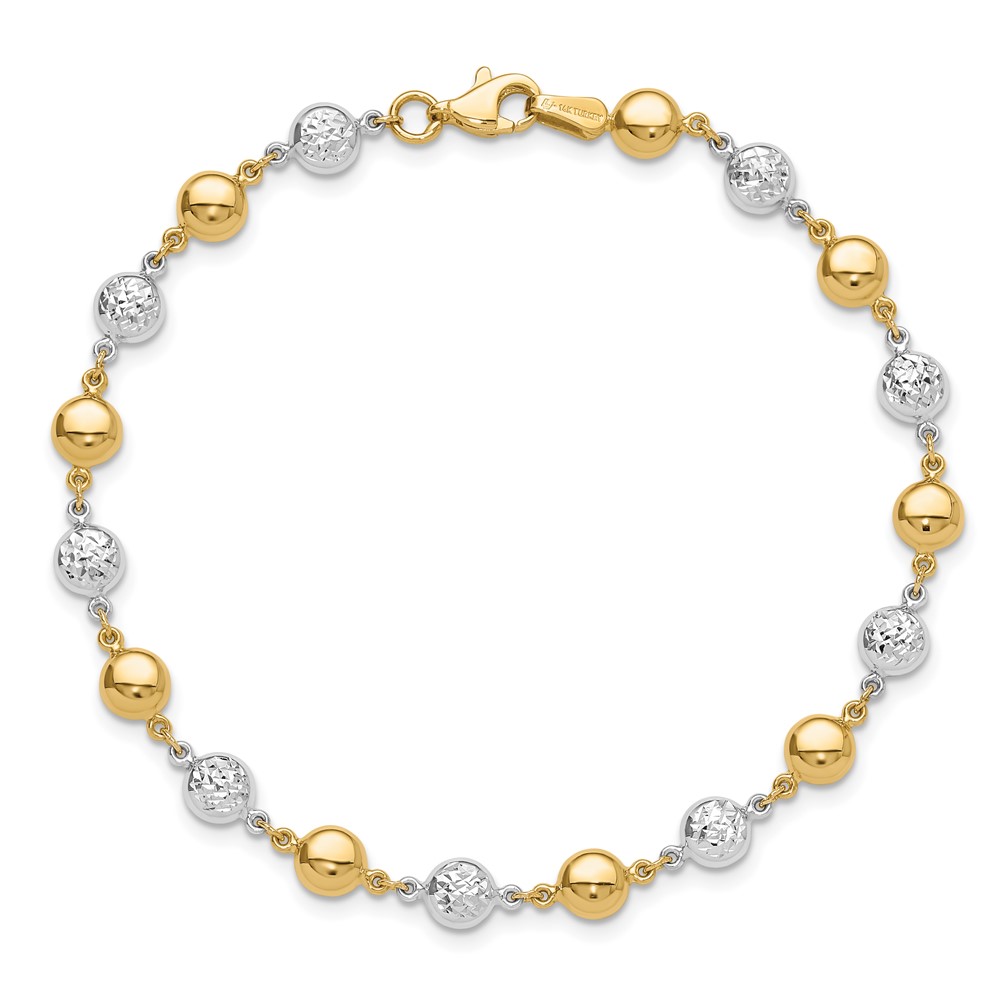 14K Two-tone Polished and Diamond-cut Puffed Beads 7.75 inch Bracelet